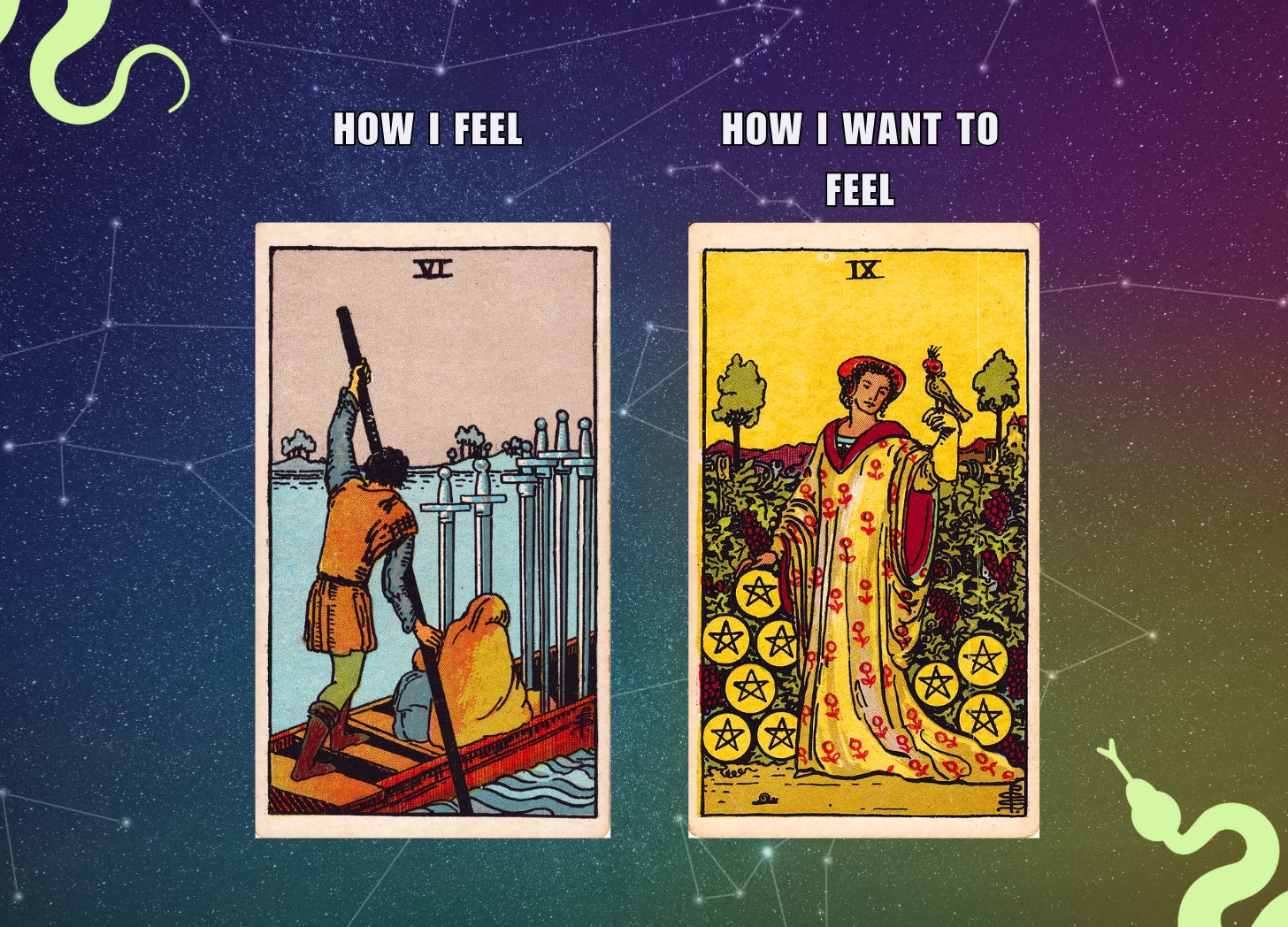 I learned the basics of this ancient art from a few books, including H. R. Giger’s Tarot, Alejandro Jodorowsky’s Way of the Tarot, and Michelle Tea’s Modern Tarot. I also listened to an audiobook written by a peer of Sabrina’s, Tarot: No Questions Asked: Mastering the Art of Intuitive Reading, by Theresa Reed, which was free on Spotify.